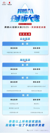 11月29日,昇腾AI创新大赛2025·天津赛区决赛在华为天津总部成功举办。我校网信办(信息技术工程学院)教师张建勋指导的学生苟橼、曾辉、逄晓丹、张资涓四位同学凭借扎实的昇腾AI开发能力与出色的团队协作表现,从众多高校队伍中脱颖而出,荣获大赛高校赛道银奖。这一成绩也创下了学校参加该项赛事以来的历史最佳排名,充分展现了我校在国产人工智能技术人才培养与创新实践方面的显著成果。