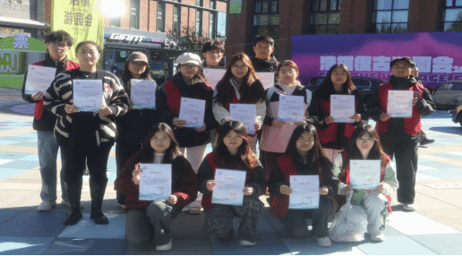 志愿服务结束后,富民路街道社区委员会为全体参与志愿者隆重颁发了志愿服务纪念证书,以表彰大家在活动中的出色表现、无私奉献与责任担当。支部成员们手持纪念证书,在赛事背景板前合影留念,定格下这段意义非凡的志愿经历。